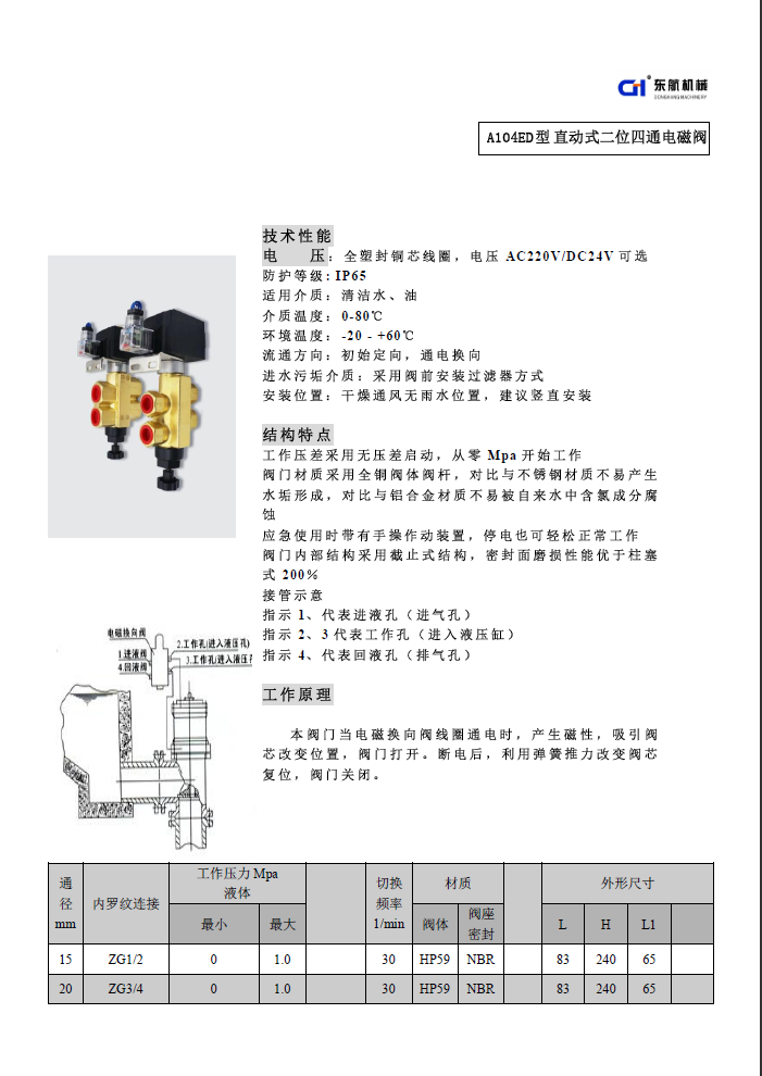 排泥閥用全銅電磁閥A102ED 防水等級IP65 全銅閥體